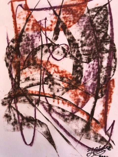 Pastels gras et fusain sur papier. Marie-Louise, cadre métal noir