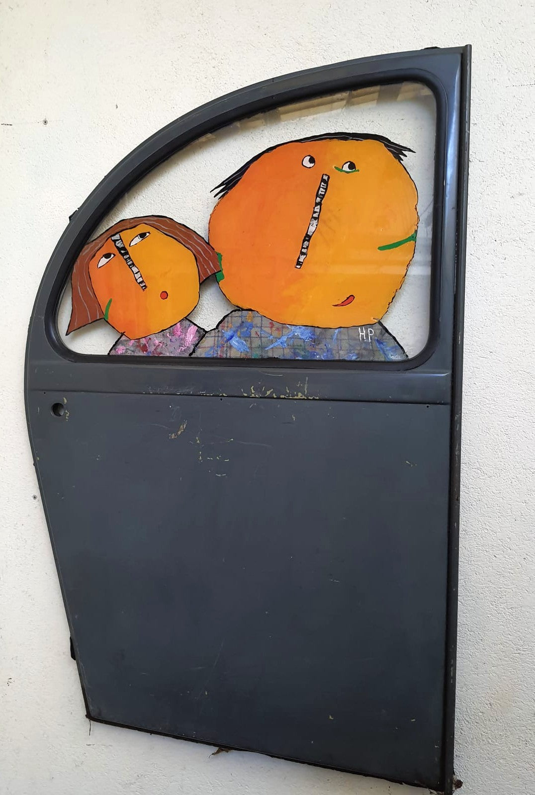 Mixte sur vitre de portière de 2CV
